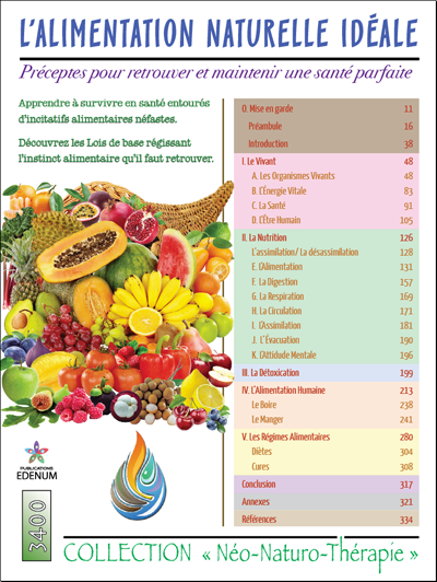 Il ne peut JAMAIS être question de santé si l’Alimentation naturelle idéale est méconnue ou négligée. Dès que notre alimentation est indigeste ou en surabondance, elle cause des troubles par la présence prolongée de déchets qu’elle génère.