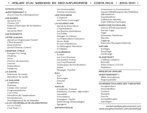C'est également pour vous informer de la formation pour être reconnu un thérapeute officiel en Néo-Naturopathie (3 mois, une saison). |